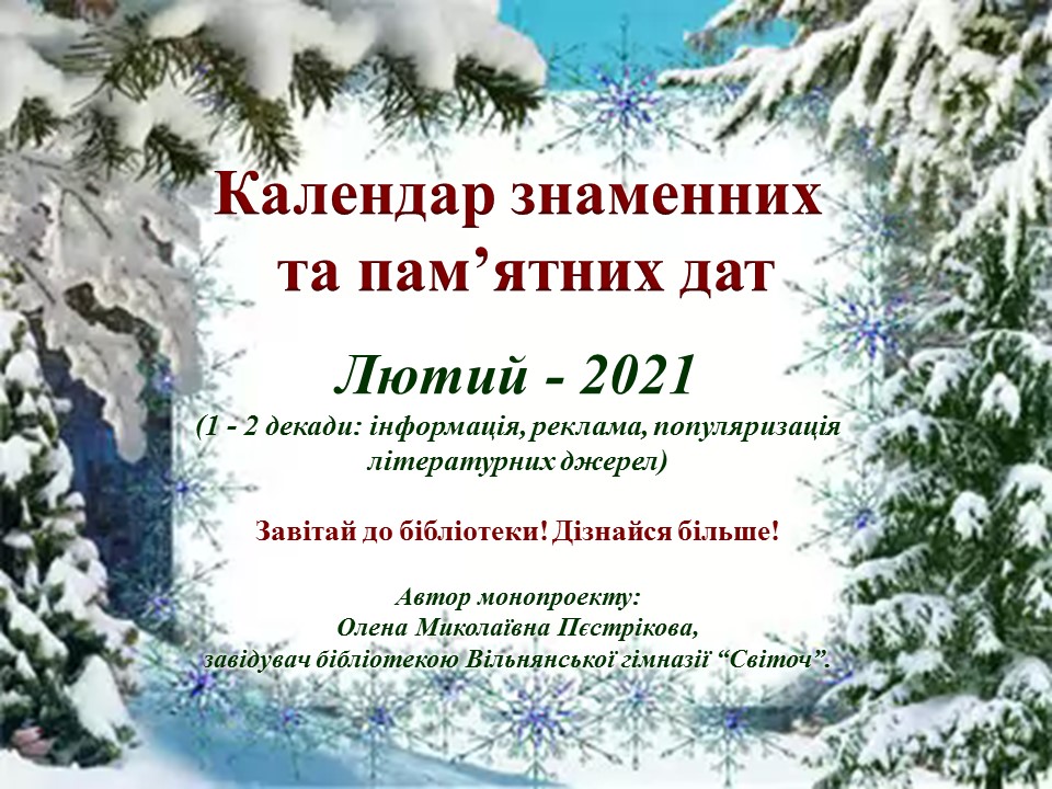 Для перегляду презентацій перейди на сторінку блогу "Зустрічі у Книжковому медіаклубі", рубрика- Календар знаменних та пам"ятних дат - 2021.